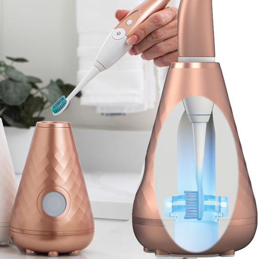 Let's face it - our bathrooms are a breeding ground for nasty germs… But worry no more! TheLucidSmile's patented UV-C cleansing base station provides a dentist-grade level of sanitization that kills 99.9% of harmful bacteria – including human coronavirus. It's like having a personal bodyguard for your toothbrush!