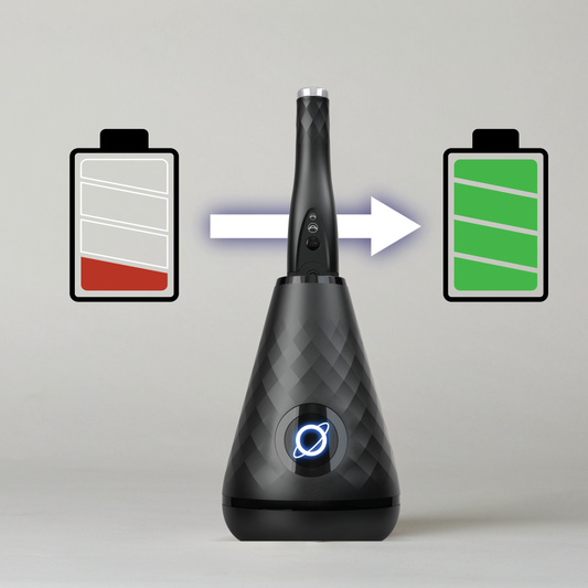 Remember the frustration of a dead electric toothbrush? Those days are over! The TheLucidSmile automatically charges when docked, so it's always ready when you are. It's one less thing to worry about during those busy days!